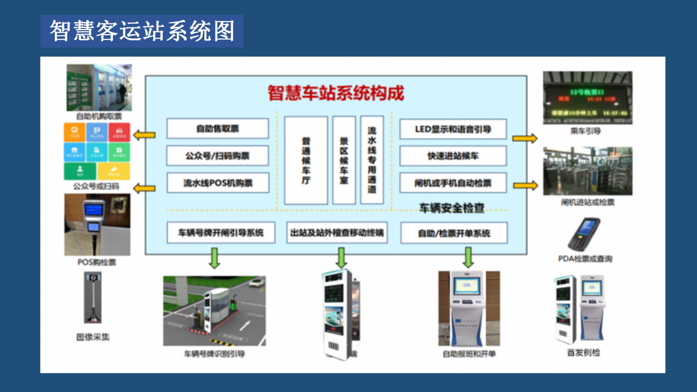 智慧客运站解决方案是基于道路运输的“旅客”“驾驶员”“车辆”“站场”“配客点”五大管理要素,依托 “物联网”“人工智能”“大数据”“云计算”等技术的运用,全新构建现代客运企业信息化运营综合管理新模式。以集中的信息化管理平台,先进的智能终端设备的运用,取代传统的人工管理模式,打造“智慧站场”业务管理新模型、支撑客运企业经营管理能力的全面提升。该平台以集团化业务资源为核心,以旅客体验为目标,以运营安全高效为原则,以开放式互联互通为基础, 以数据深度挖掘与分享共赢为发展。最终支撑“新客运”实现“方便快捷、安全高效”的品牌建设和发展目标。